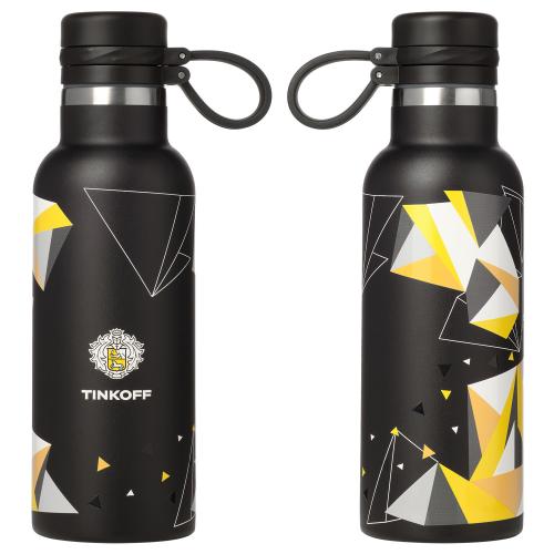 Вакуумная герметичная конструкция выполнена из двухслойной высоколегированной стали 304 марки, что делает конструкцию более прочной и устойчивой к мелким сколам и царапинам. Крышка из высококачественного пластика, оснащена удобной силиконовой петелькой для переноски. Бутылку можно переворачивать и класть в сумку.