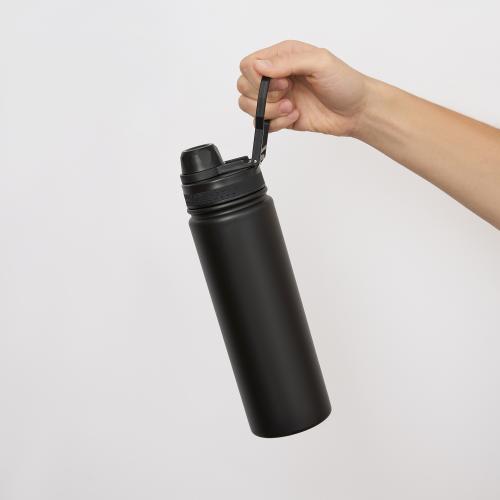 Бутылка оснащена съемной трубочкой. Удобная ручка на крышке облегчает переноску и позволяет прикрепить термобутылку к рюкзаку или сумке.