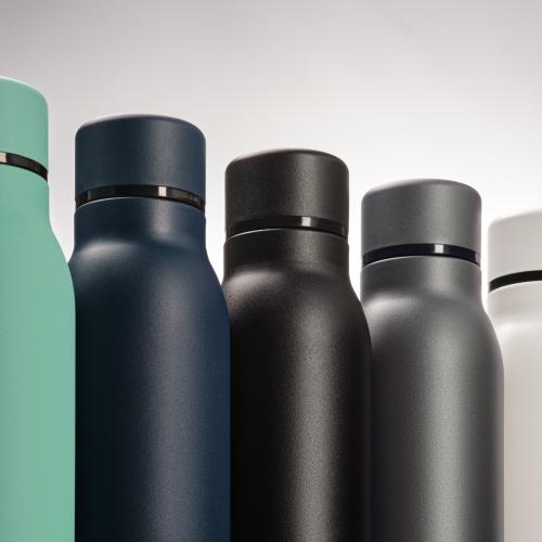 Термобутылку классической формы удобно брать с собой в офис, спортзал, на пробежку или в поход. Крышка в цвет корпуса, полностью литой корпус бутылки, вакуумная герметичная конструкция из двухслойной высоколегированной стали марки 304, порошковое покрытие корпуса и крышки.