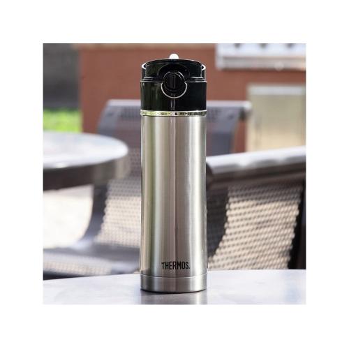 Особый комфорт при использовании термокружки обеспечивается за счет эргономичной формы и оригинальной конструкции крышки-пробки. Пить из ёмкости можно даже на ходу, не снимая крышку-пробку – достаточно отогнуть блокировочное колечко и нажать на кнопку, верхняя крышка мгновенно откидывается, фиксируясь в открытом положении, и не опрокидывается в процессе питья. В крышке-пробке предусмотрены два отверстия – питьевое и воздушное, обеспечивающее плавный поток жидкости. Кольцо, фиксирующее крышку в закрытом положении, предотвращает случайное открывание, поэтому термокружку безопасно носить в сумке или рюкзаке. Компактные размеры позволяют разместить термокружку в автомобильном подстаканнике или велосипедном держателе.