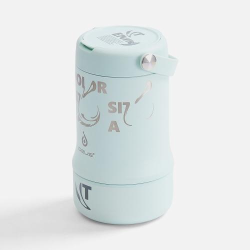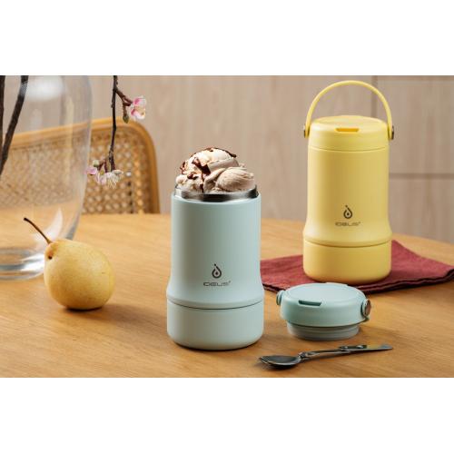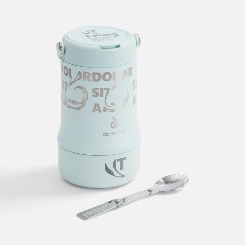 Tabenodo — универсальный многофункциональный термос для работы, школы, похода и путешествия. В компактном корпусе разместились ложка, тарелка и емкость для любимого блюда. Матовая поверхность приятна на ощупь, а силиконовая ручка удобна для переноски.