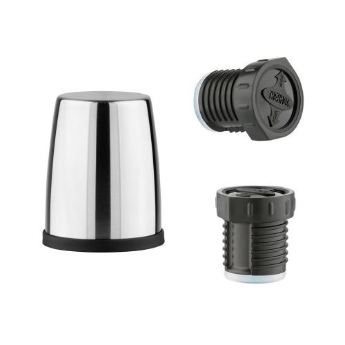 Термос выдержит любые экстремальные ситуации – его корпус усилен специальными бамперами, а крепкое основание с противоскользящей накладкой не боится ударов при падении и обеспечивает устойчивость на любых поверхностях. Усиливает термоизолирующие свойства термоса глубокая винтовая пробка. Герметичная поворотная пробка имеет специальные пазы, позволяющие выливать напиток, не отвинчивая её полностью. На верхней части пробки предусмотрены указатели потока жидкости.
