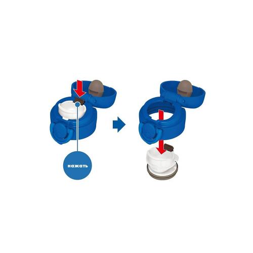 Оригинальная конструкция крышки-пробки позволяет пить из термоса даже на ходу – удобный поильник с небольшим выливным отверстием предотвратит расплёскивание напитка при движении, позволяя контролировать поток жидкости. Термос открывается одной рукой (левой или правой): при нажатии на кнопку верхняя крышка автоматические откидывается на 180 градусов, фиксируется в открытом положении и не опрокидывается при питье.