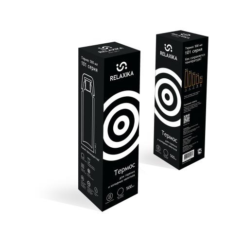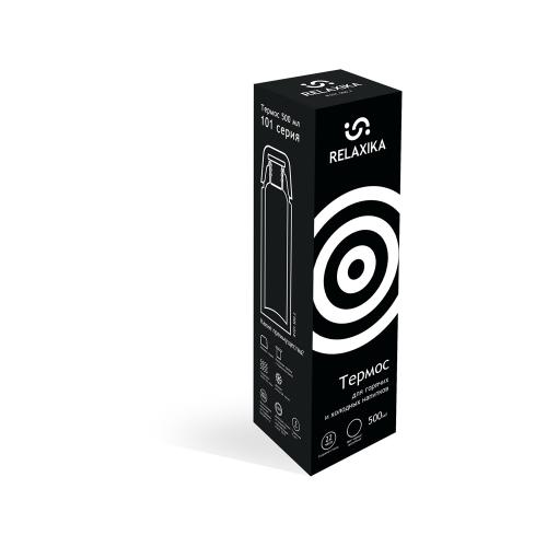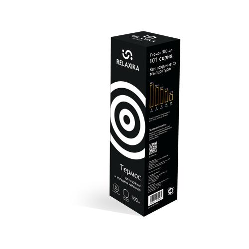 Классический термос Relaxika черного цвета с высокими показателями удержания температуры напитка для походов, путешествий, спорта и ежедневного использования. Прочные двойные стенки из высококачественной нержавеющей стали 18/8 с вакуумной изоляцией гарантируют, что ваш напиток останется холодным в течение 28 часов и горячим до 22 часов. Этот материал не только прочен, но и гигиеничен, не выделяет никаких вредных для здоровья веществ. Ваши напитки сохраняет естественный вкус и не приобретут посторонний запах.