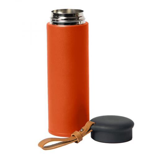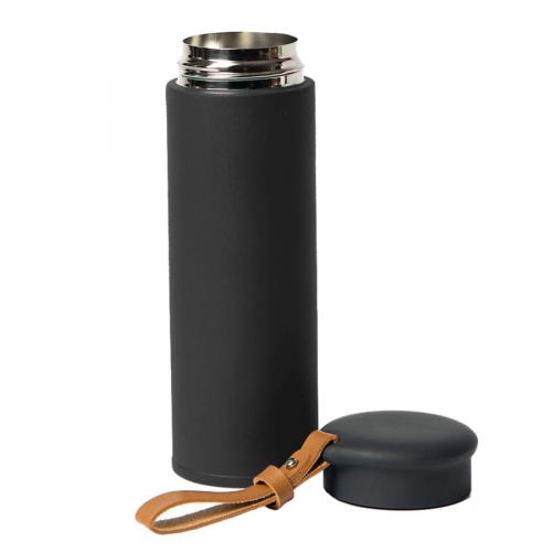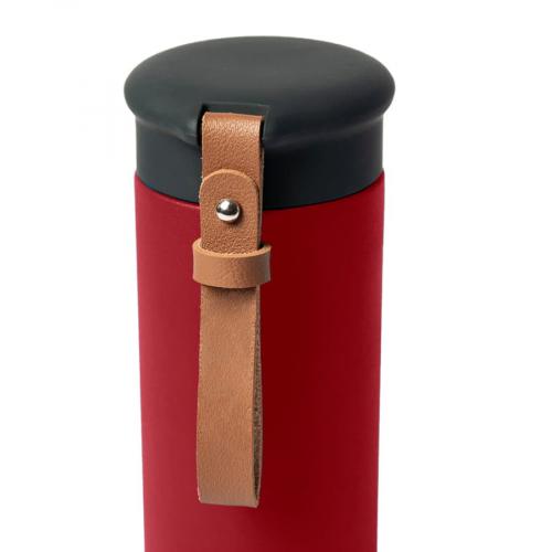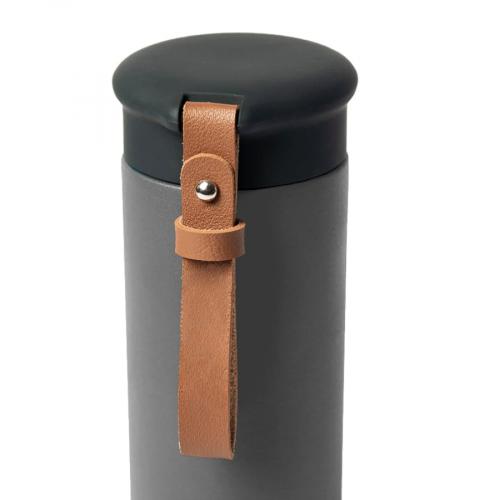 Вакуумный термос STRIPE с двойными стальными стенкамиСтильный матовый корпус термоса из нержавеющей стали (марка 304)Удобный ремешок из искусственной кожи, подходит для персонализацииГерметичная крышка с покрытием soft-touch не даст напитку пролиться