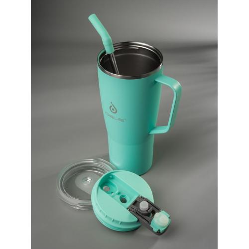 - 2 крышки в комплекте: одна на 100% герметичная с механизмом блокировки отверстия для питья, вторая — с отверстием для трубочки