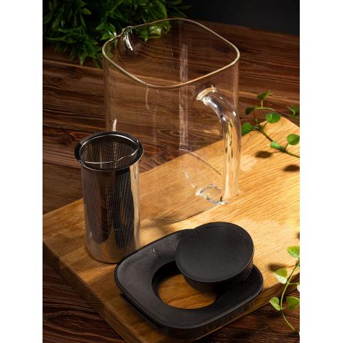Благодаря прозрачному стеклу можно с наслаждением наблюдать за процессом заваривания, а эргономичная ручка делает процесс наполнения чашек легким и удобным. Встроенный металлический фильтр позволяет создать насыщенный напиток без лишних чаинок, которые впоследствии будет легко убрать одним движением.
