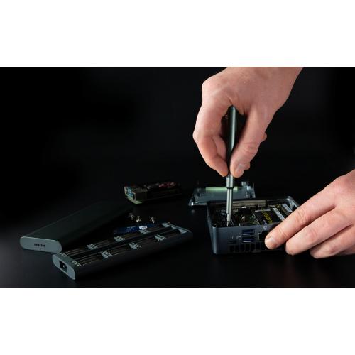 В набор бит для точных работ входят насадки, необходимые для ремонта смартфонов, планшетов, ноутбуков и ПК, включая iPhone, iPad, MacBook Air и MacBook Pro, а также игровые консоли и контроллеры от Nintendo, PlayStation или XBox.