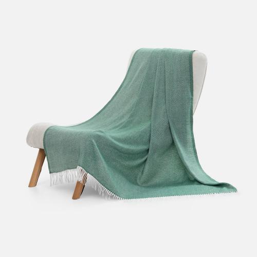 Классический рисунок «елочка» не слишком привлекает внимание, но в то же время добавляет изюминки. Смешанный состав пряжи продлевает срок службы и существенно облегчает уход за пледом.