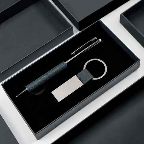 Очень стильный набор: ручка из переработанного алюминия и брелок для ключей. Металл цвета GUN с зеркальным эффектом. Отделка: высококачественная ткань из RPET, цвет серый, матовый. Упаковка коробка из дизайнерского картона.