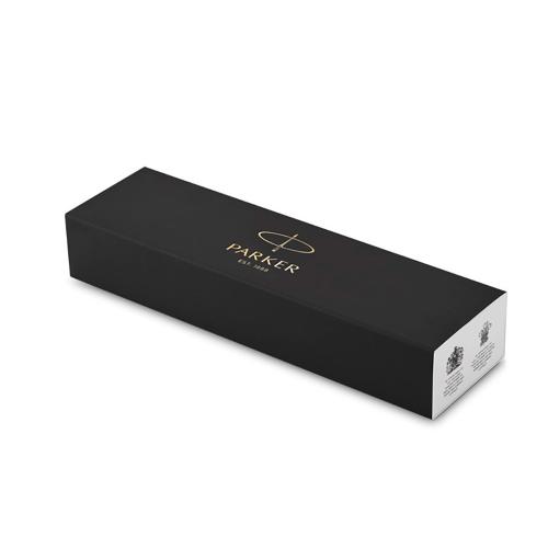 Лакированный корпус из отшлифованного металла с круговой полировкой превосходно сочетается с позолоченными декоративными элементами. Ручка упакована в подарочную коробку Parker.
