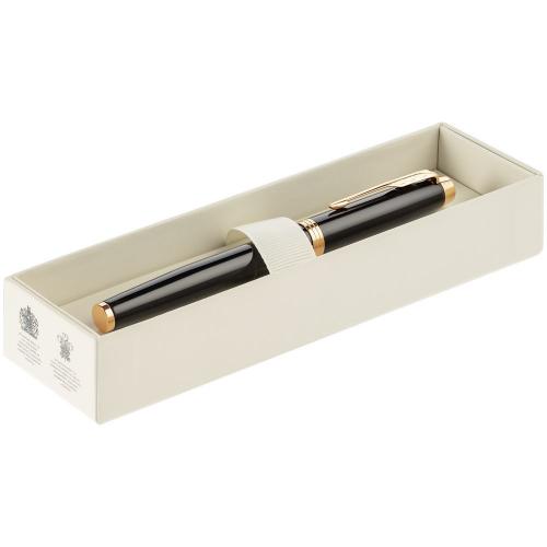 Перьевая ручка в корпусе, покрытом черным глянцевым лаком. Позолоченная отделка деталей с полировкой.