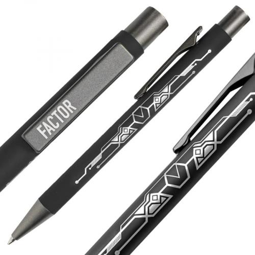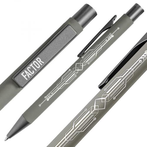 Модель ручки FACTOR – это оптимальный выбор для тех, кто предпочитает добротное качество, надежность и изящную простоту. Этой ручкой писать легко и удобно, она буквально скользит по бумаге благодаря качественным чернилам и надежному пишущему узлу. Все эти качества позволят ручке служить вам верой и правдой долгое время. А клип и корпус данной модели отлично подойдут для нанесения вашего логотипа. • Pantone, близкий к 200 С• Размер 140*10 мм• Корпус из алюминия с покрытием soft touch• Металлический клип-прищепка серого цвета • Пластиковые носик и кнопка в цвет клипа• Нажимной механизм подачи стержня• Пулевидный пишущий узел 1.0 мм• Длина линии письма 1000 м • Чернила Dokumental. Цвет чернил синий• Сменный стержень Parker type• При гравировке вскрывается натуральный цвет алюминия, который может быть либо более белый, либо более серого оттенка.