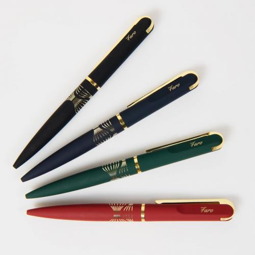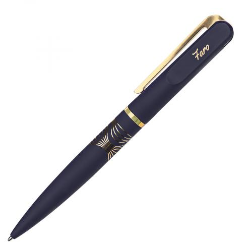 Глубокий насыщенный оттенок и бархатистая поверхность ручки FARO создают благородный контраст с отделкой цвета желтого золота. Оригинальный клип, скругленный в верхней части, напоминает о роскошных украшениях и символах власти.Это прекрасный выбор как для именного подарка бизнес-партнеру, так и для рекламы собственного бренда.Нижняя часть ручки выполнена из нержавеющей стали, при гравировке “Soft touch” покрытия вскрывается зеркальная подложка в цвет отделки. Верхняя часть ручки и клип - из пластика, гравировка возможна на определенных настройках.