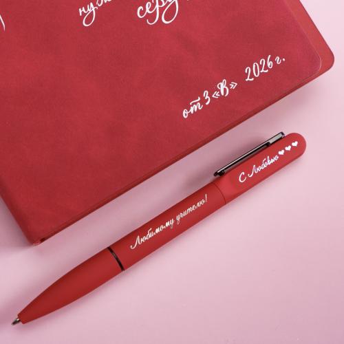 • Цвет, близкий к Pantone 200 C• Размер 13 х 140 мм• Верхняя часть корпуса из пластика, средняя и нижняя из аллюминия. Корпус с покрытием soft touch• Металлический клип цвета gun• Поворотный механизм подачи стержня• Пулевидный пишущий узел 1.0 мм• Длина линии письма 1000 - 1200 м • Чернила Dokumental. Цвет чернил синий• Ручка одноразовая. Стержень замене не подлежит• Встроенная батарейка и лампочка для подсветки (подсветка возможна только после гравировки верхней части корпуса). Батарейка рассчитана на 10-12 часов работы• батарейку можно заменить. Подходящая модель LR41, 1,5 V. Для одной модели требуется 3 батарейки.