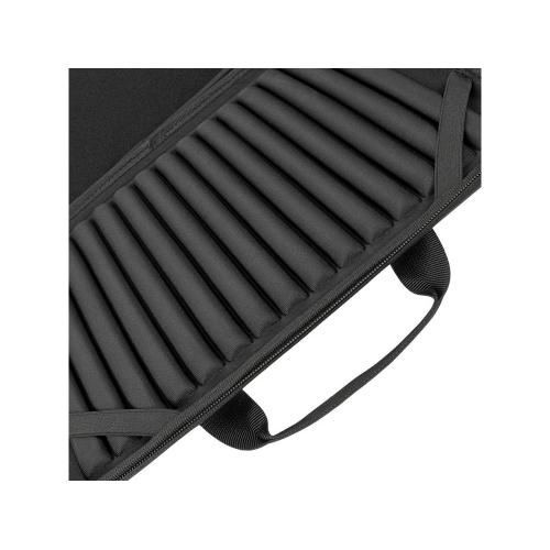 • Внутри дно оборудовано специальными накладками для защиты ноутбука, его рифленая форма обеспечивает хорошую вентиляцию и снижает нагрев устройства при работе в чехле.