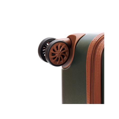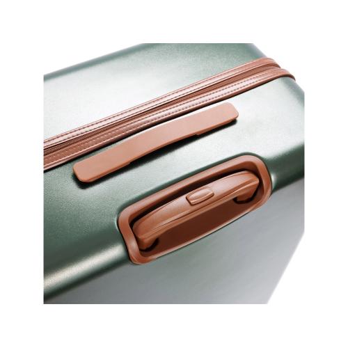 АМЕЛИЯ | AMELIA воплощает собой неповторимый образ, сочетающий эстетику ретро с современной функциональностью. Вся товарная линейка представлена в великолепных темно-изумрудном и кремовом оттенках. Контрастные детали насыщенного коричневого цвета, бронзовые ручки и фурнитура идеально дополняют дизайн, подчеркивают индивидуальность и выразительность каждой модели. Изготовленные из высококачественного АБС-пластика и поликарбоната, чемоданы АМЕЛИЯ | AMELIA обладают удивительной прочностью и легкостью. Четыре резиновых колеса с бесшумным ходом и возможностью поворота на 360° обеспечивают плавное передвижение по любой поверхности, сохраняя при этом полную маневренность. Интегрированный замок TSA с трехзначным кодом гарантирует защиту вашего багажа от несанкционированного доступа. Продуманная концепция больших отделений с перегородкой на молнии и дополнительными карманами максимально оптимизирует использование внутреннего пространства. Легкая телескопическая ручка с несколькими положениями фиксации обеспечивает комфорт в использовании для людей разного роста. Удобные ручки сбоку и на дне корпуса облегчают загрузку и выгрузку чемодана. Боковые держатели позволяют разместить дополнительные дорожные аксессуары.