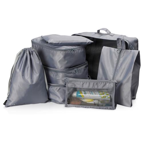 Набор чехлов для одежды от бренда Voyager, выполненный из прочного качественного полиэстера 290D, организует ваши вещи в чемодане во время путешествия и поможет разместить их комфортно в шкафу. В отличие от пакетов чехлы многоразовые, что наверняка понравится защитникам природы, их легко стирать, сушить и хранить. Набор состоит из восьми чехлов, упакованных в один большой с сетчатой стенкой. Этот чехол оборудован ручкой для переноски и кнопками на задней стенке, которые позволяют компактно сложить изделие вдвое в зафиксированном положении для хранения.