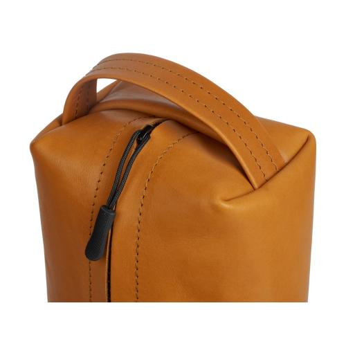 Косметичка, она же Dop Kit, предназначена для хранения и переноски всяких дорожных принадлежностей, предметов гигиены, инструментов или каких-нибудь зарядок для гаджетов. Косметичка изготовлена целиком из натуральной кожи и закрывается на молнию.