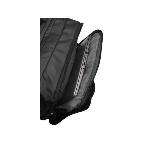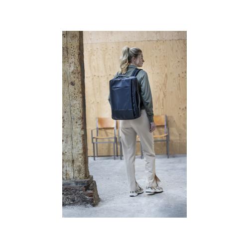 Расширяемый и прочный рюкзак для ноутбука Expedition Pro, сертифицированный GRS, — идеальный выбор для профессионалов, которым постоянно приходится совмещать путешествие и работу. Рюкзак имеет увеличенную вместимость, эквивалентную сумке-тележке для ручной клади, и изготовлен из водоотталкивающего RPET в сочетании с премиальными элементами из ПУ и подкладкой из RPET. Он имеет специальное отделение для 17-дюймового ноутбука и отделение для планшета, расширяемое отделение в стиле тележки для хранения одежды, встроенный герметичный большой карман для туалетных принадлежностей и просторное переднее отделение с множеством организационных карманов внутри и снаружи. Модель имеет мягкие регулируемые лямки, встроенный карман для карточек, петлю для солнцезащитных очков, формованную подкладку из воздушной сетки, а также мягкую ручку, обеспечивающую максимальный комфорт и удобство при переноске. Объем: 35 литр. Не содержит ПВХ. GRS certified recycled polyester.