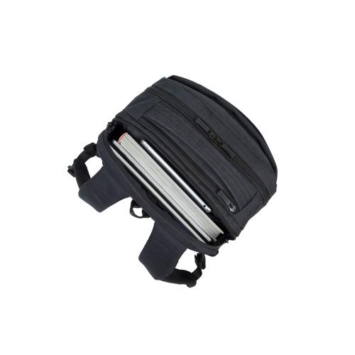 • Основное отделение для ноутбука с вертикальной загрузкой, имеет мягкие стенки, утолщенное дно и дополнительное внутреннее отделение для планшета до 10.1.