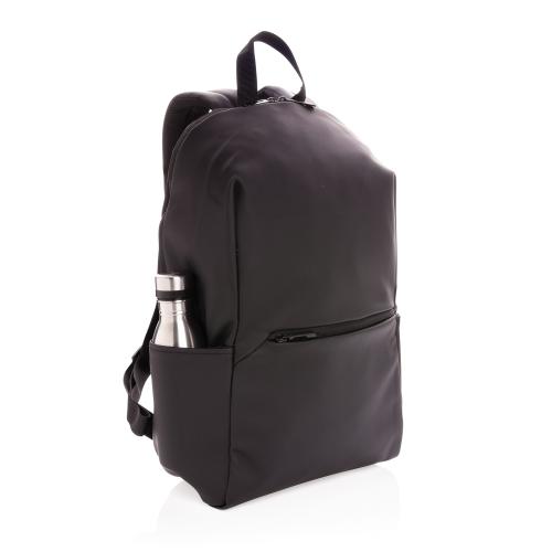 Минималистичный рюкзак из гладкого полиуретана с подкладкой и дополнительным карманом для ноутбука 15,6 дюймов. Также предусмотрены 2 внутренних кармана и 2 петли для ручек. Задняя стенка из сетчатого материала, регулируемые лямки. Снаружи — 100% полиуретан, внутри — полиэстер 210D. Без ПВХ.