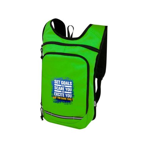 Рюкзак Trails изготовлен из 100% переработанной по стандарту GRS водоотталкивающей ткани и имеет один передний карман на молнии и одно основное отделение на молнии, а также отделение для гидросистемы. Светоотражающие полосы для видимости и сетчатая задняя часть для комфорта при переноске делает его отличным экологичным выбором для активного отдыха.