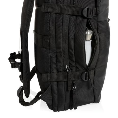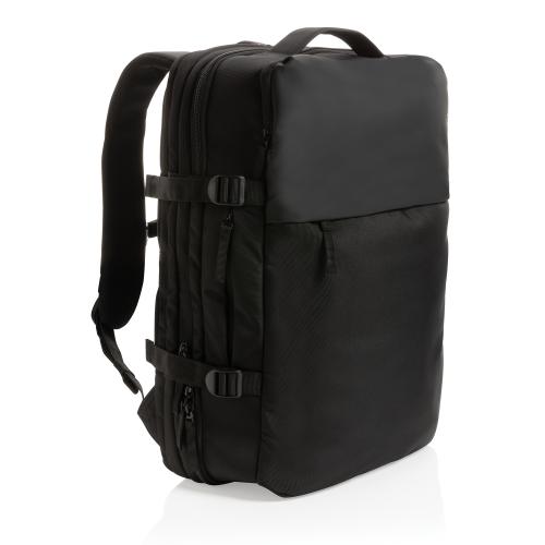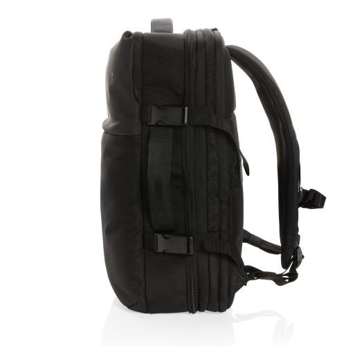 Рюкзак для путешествий Swiss Peak из rPET AWARE™ с регулируемым объемом идеально подойдет для рабочих поездок. Оснащен отделением для ноутбука до 15.6" с быстрым доступом для прохождения досмотра в аэропорту. При необходимости вместимость рюкзака можно увеличить на 35%. Боковые ремни служат дополнительным укреплением. Специальные карманы-органайзеры предусмотрены для зарядного устройства, кабелей и других необходимых в поездке мелочей. Есть багажный ремень. Рюкзак выполнен из материала rPET с маркировкой AWARE™, подтверждающей подлинность переработанных материалов. При производстве этого рюкзака мы сэкономили 22,9 л воды и переработали 38,4 пластиковых бутылок объемом 0,5 л. 2% с продаж каждого изделия будут переданы в фонд Water.org. Не содержит ПВХ.