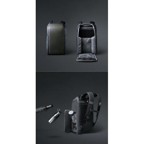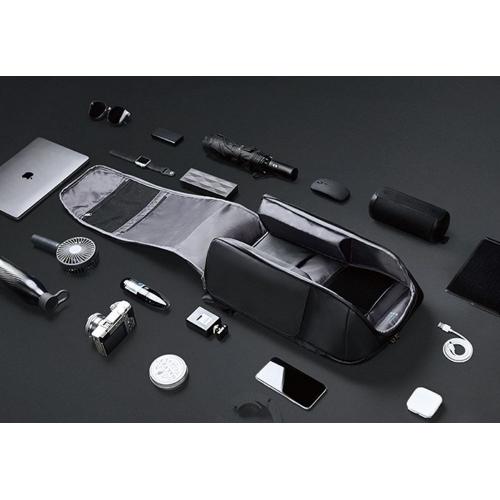 - 2 боковых кармана с быстрым доступом благодаря клапанам на сильных магнитах: один карман с дополнительной специальной водозащитой для термокружки, бутылки с водой или зонта, второй карман для мелкой электроники с дополнительной регулируемой мягкой перегородкой на липучке