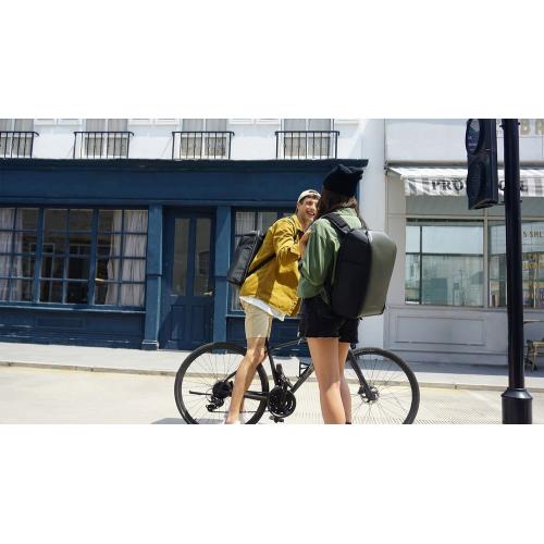 - Анатомическая конструкция рюкзака вместе с широкими лямками и поперечным ремнем на магнитной пряжке перераспределяют часть нагрузки с плеч и спины на талию и бедра, в результате чего вес рюкзака воспринимается на 20-25% легче, чем при использовании стандартных моделей