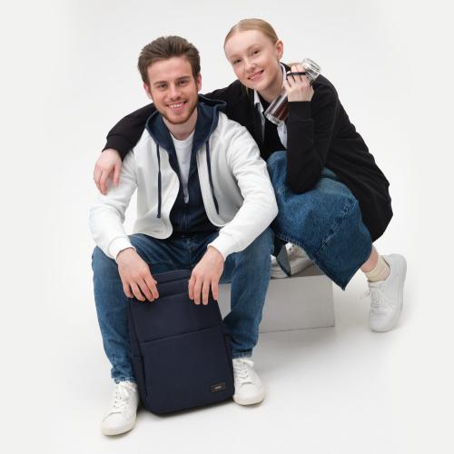 Компактный городской рюкзак Forst. С внешней стороны рюкзака размещены два кармана на молнии: один небольшой, который можно использовать для телефона, ключей, проездных карточек и других мелочей, другой – вместительный, для более крупных предметов.