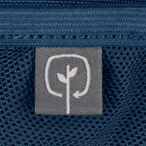 Изготовлен из 100% переработанного материала — на один рюкзак уходит в среднем 12 ПЭТ-бутылок.