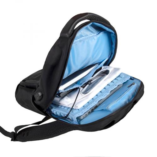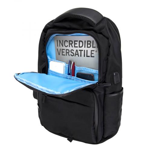 Основная ткань: цвет, близкий к Pantone Black C. · Основная ткань: 100% полиэстер, подкладка: 100% полиэстер · Объём: 19 литров · Вмещает ноутбук 15,6" Описание: · Сочетание основного прочного водоотталкивающего материала и яркой контрастной подкладки · Водонепроницаемые молнии с лазерным кроем · Три дополнительных внешних кармана на молнии · Два боковых кармана · Внутри укрепленный отдел для ноутбука · Специальный RFID карман с системой защиты от несанкционированного считывания персональных данных · Внутренние карманы-сетки и карман-органайзер для дополнительного хранения · USB порт для подзарядки вашего устройства (внутри рюкзака расположен кабель для соединения с power bank) · Силиконовая нашивка для проводов от наушников · Специальная стропа на спинке для крепления на выдвижной ручке чемодана · Эргономичная спинка и лямки рюкзака из вентилируемого материала · Укрепленная ручка рюкзака · Карманы для проездных карт на лямке рюкзака · Светоотражатели на лямках рюкзака для обеспечения безопасности · Лямки прошиты дополнительными стропами в быстро изнашиваемых местах, которые можно отрегулировать по длине и зафиксировать пластиковыми крепежами · Брендированные металлические пуллеры Bag Fly · Жаккардовый логотип Bag Fly внутри · Картонный ярлык Bag Fly · Внутрь рюкзака вложена сумка из нетканого материала для хранения · Упаковка: прозрачный пакет