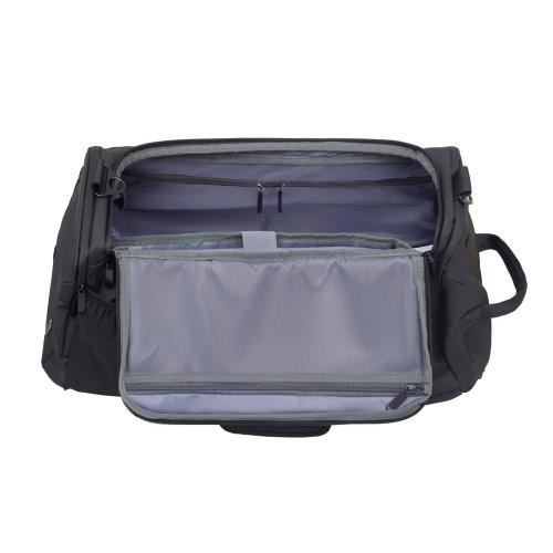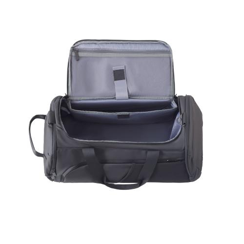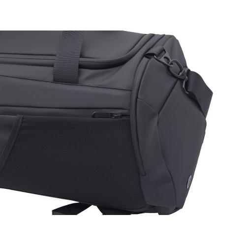 Спортивная сумка-рюкзак 2-в-1 подходит для походов в спортзал и деловых поездок. Чтобы превратить рюкзак в сумку, надо отстегнуть лямки внизу и вложить их в карман на молнии на спинке. В трансформере предусмотрено все для удобства использования: