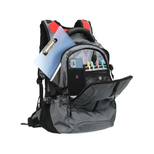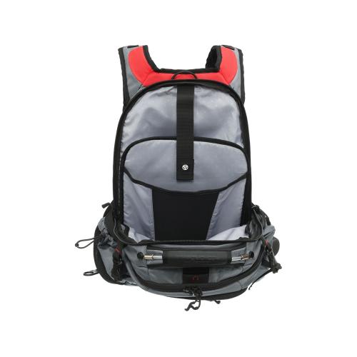 Благодаря боковым карманам, вы можете носить с собой бутылку с водой или зонт. Спинка и ремни оборудованы системой циркуляции воздуха. Карман-органайзер и кольцо для ключей позволят вам упорядоченно хранить большое количество мелких вещей. Усиленная эргономичная ручка с металлическим тросом позволяет носить рюкзак не только на спине, но и в руках, когда это необходимо. Поясной ремень для поддержания рюкзака сделает ношение рюкзака еще более удобным. Рюкзак выполнен в сером цвете с красной отделкой, что делает его универсальным и стильным. Объём 30 л позволяет вместить всё необходимое.
