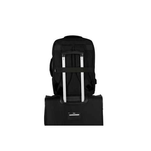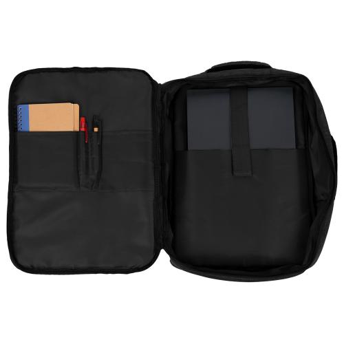 Легкий, удобный и вместительный в деловых поездках. Рюкзак трансформируется в деловую сумку благодаря второй ручке. Основное отделение с органайзером имеет глубину 11 см, что позволяет хранить в нем одежду и все необходимое для командировок. Для большего удобства рюкзак оснащен USB выходом и ремнем для крепления к чемодану. Лямки регулируются по длине.