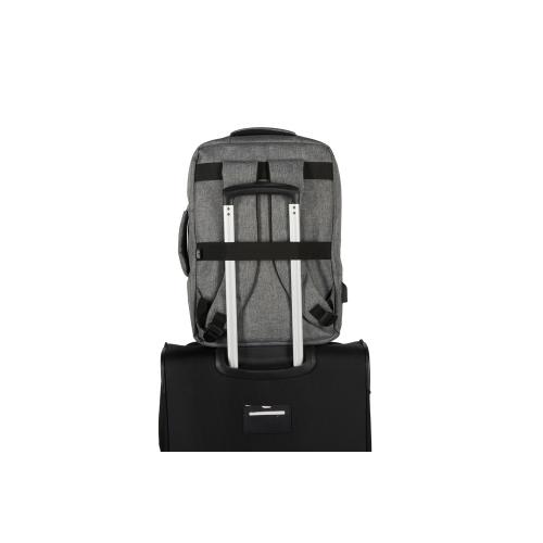 Легкий, удобный и вместительный в деловых поездках. Рюкзак трансформируется в деловую сумку благодаря второй ручке. Основное отделение с органайзером имеет глубину 11 см, что позволяет хранить в нем одежду и все необходимое для командировок. Для большего удобства рюкзак оснащен USB выходом и ремнем для крепления к чемодану. Лямки регулируются по длине.