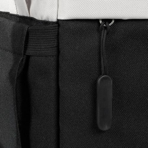 Двухцветное исполнение с темным низом и более светлым верхом, с одной стороны, помогает рюкзаку дольше сохранять опрятный внешний вид, а с другой — позволяет активнее и контрастнее выделить логотип компании.