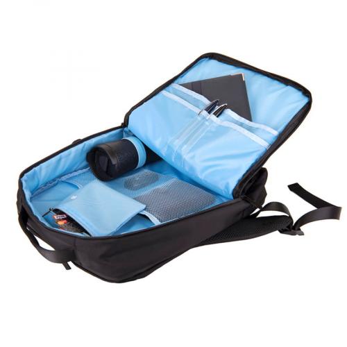 Основная ткань: цвет, близкий к Pantone Black C, подкладка: цвет, близкий к Pantone 2169 C • Основная ткань: 100% полиэстер, подкладка: 100% полиэстер• Объём: 20 литров• Вмещает ноутбук 15,6" Описание:• Сочетание основного прочного водоотталкивающего материала и яркой контрастной подкладки • Два основных отдела с обратной молнией, защищающей от попадания влаги внутрь• Два дополнительных внешних кармана на молнии• Внутри укрепленный отдел для ноутбука с защитной тесьмой на липучке• Специальный RFID карман с системой защиты от несанкционированного считывания персональных данных• Внутренние карманы-сетки и карман-органайзер для дополнительного хранения• Удобная петля из эластичной резинки для термокружки• Специальная стропа на спинке для крепления на выдвижной ручке чемодана• Эргономичная спинка и лямки рюкзака из вентилируемого материала• Укрепленная ручка рюкзака• Карманы для проездных карт на лямках рюкзака• Светоотражатели на лямках рюкзака для обеспечения безопасности• Лямки прошиты дополнительными стропами в быстро изнашиваемых местах, которые можно отрегулировать по длине и зафиксировать пластиковыми крепежами• Брендированные металлические пуллеры Bag Fly• Жаккардовый логотип Bag Fly внутри• Картонный ярлык Bag Fly• Внутрь рюкзака вложена сумка из нетканого материала для хранения • Упаковка: прозрачный пакет