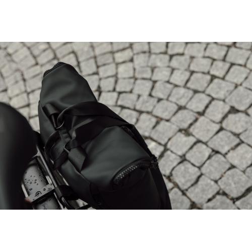 Оригинальное сочетание практичности и стиля — сумка-рюкзак из коллекции Baltimore. Он изготовлен из мягкого водоотталкивающего полиуретана с покрытием soft-touch. Рюкзак можно превратить в сумку или прикрепить к раме велосипеда. Большое внутреннее отделение закрывается на прочную молнию, внутри также есть карман с мягкой подкладкой — для ноутбука или планшета. Снаружи рюкзак дополнительно фиксируется застежками. Расстегивать их, чтобы достать электронику, вам не придется: боковая молния позволит добраться до ноутбука напрямую. Отличительной чертой этого рюкзака являются его лямки. Их можно зафиксировать дополнительным креплением сверху или посередине — чтобы превратить рюкзак в сумку. Если прикрепить его к раме велосипеда, лямки можно перекинуть на внешнюю сторону и закрепить карабинами. Сумка-рюкзак Baltimore — это современное решение для тех, кто предпочитает быть в движении.