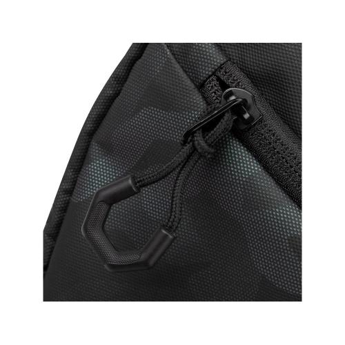 Выполнена из высококачественной водоотталкивающей ткани с ламинированием. • U-образный клапан на молнии для легкого доступа в основное отделение. • Внутренний сетчатый карман на молнии для паспорта, бумажника. • Внешний карман на молнии для смартфона. • Съемный плечевой ремень