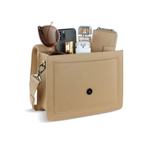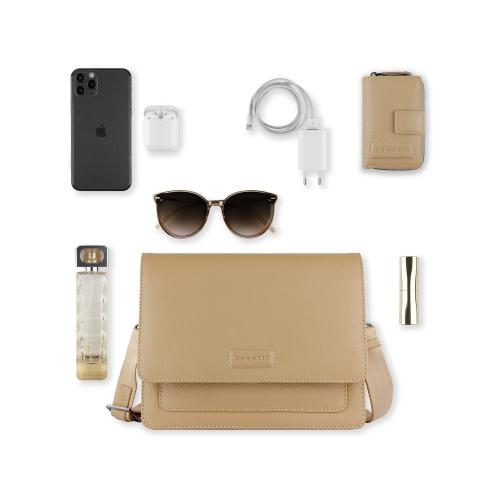 Сумка через плечо женская BUGATTI ЭЛЬЗА | ELSA, песочного цвета, воловья кожа/полиэстер, 25х8,5х20 см, артикул 49460554