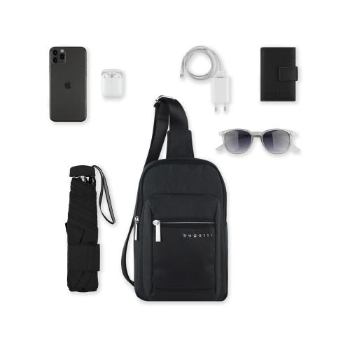 Внешняя организация: передний карман на молнии, задний карман на молнии с защитой данных RFID, регулируемый плечевой ремень (до 150 см)