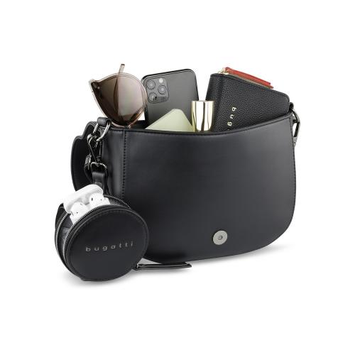 Сумка наплечная женская BUGATTI АЛМАТА | ALMATA, с кошельком, чёрная, полиуретан, 27х6х18,5 см, артикул 49665801