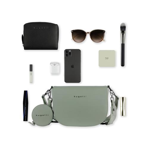 Внешняя организация: съёмный регулируемый плечевой ремень (до 50 см), съёмный регулируемый плечевой ремень (до 140 см) со съёмным кошельком на молнии