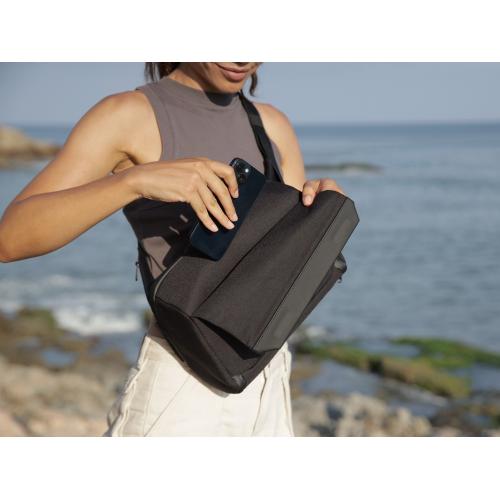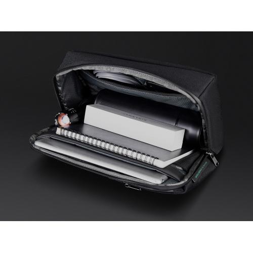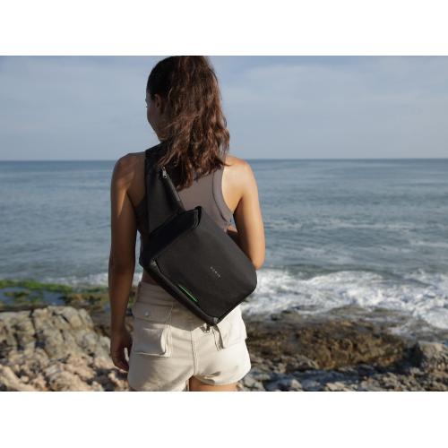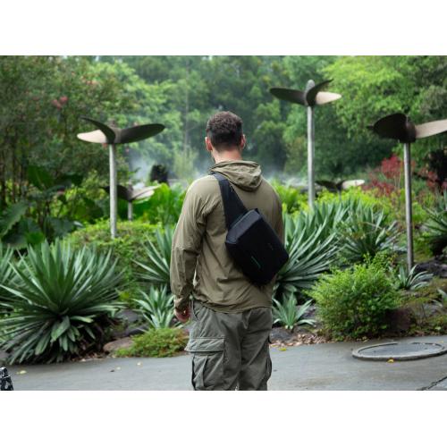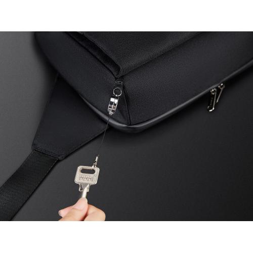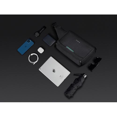 Сумка-слинг - модный и стильный аксессуар. Карман быстрого доступа к содержимому на магните разработан для большего удобства при использовании. Множество карманов внутри помогают аккуратно раскладывать содержимое. Задний потайной карман закрывается на магнит. Карман для бутылки или зонта на дне сумки. Карабин для ключей на ретракторе. Лямка с магнитной застежкой. Водостойкие материал и молнии. Спереди светоотражающий элемент для большей защиты в темное время суток. Поставляется в коробке с ручкой.