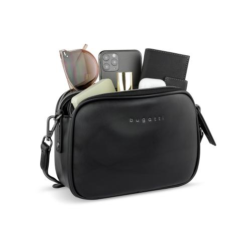 Сумка кросс-боди женская BUGATTI АЛМАТА | ALMATA, чёрная, полиуретан, 21,5х6х15 см, артикул 49665401