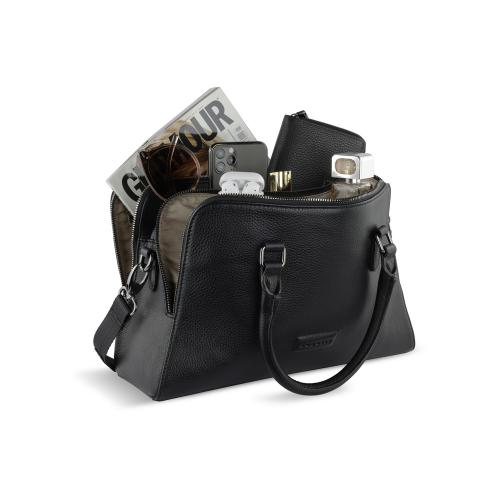 Функциональная организация: 3 отделения на молнии с карманом на молнии и 2 открытыми карманами, 2 ручки, съемный регулируемый плечевой ремень до 130 см