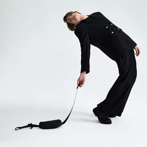 Внутри — карман-органайзер, снаружи, на тыльной стороне, — скрытый карман. Регулируемый ремень позволяет носить сумку на плече, через грудь или на поясе.