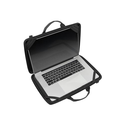 • Ноутбук надежно крепится внутри чехла специальными фиксирующими лентами по углам.